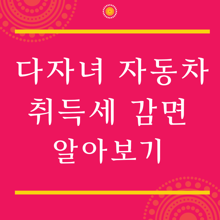 ※ 현행에서는 양육목적으로 다자녀를 양육하는 자가 자동차를 취득할 시에, 취득세에 대해 면제 또는 감면을 받았었는데요. 개정안에서는 2자녀라고 하더라도, 면제 또는 감면 혜택이 적용이 됩니다. 그러므로 다자녀 가구의 자동차 취득세 경감에 관한 사항에 대해 각 지역의 관할 지방자치단체에서 확인해 주세요.